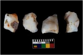 | Description / विवरण | There are n 4 of utilized worked cores. They show multidirectional irregular dominant scar pattern. One of them is tapering on one end. Three of them have sharp edges. |
