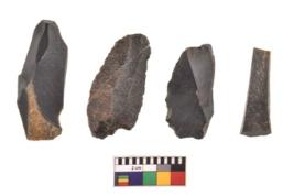 | Description / विवरण | There are n 4 utilized flake cores. There are multidirectional irregular scar pattern on both dorsal and ventral face of the flake cores. Two are tapering at one end and two have sharp edges. |