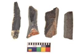 | Description / विवरण | There are n 4 utilized flake cores. There are multidirectional irregular scar pattern on both dorsal and ventral face of the flake cores. Three are tapering at one end and one has sharp edges. |