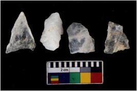 | Description / विवरण | There are n 4 flake cores. All of them are fully fluted flake cores without any trace of crested ridge flakes. Some are tapering at one end and some have flat base. |