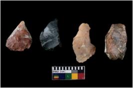| Description / विवरण | There are n 4 of utilized worked cores. They show multidirectional irregular dominant scar pattern. Three of them is tapering at one end. |