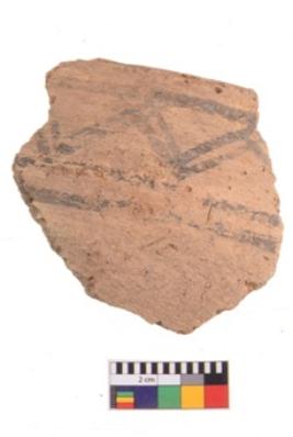 | Description / विवरण | Specimen of potsherd with traces of decorative geometric painting, Type Black on Red ware . |
