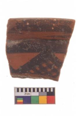 | Description / विवरण | Specimen of potsherd with decorative geometric painting, Type Black on Red ware . |