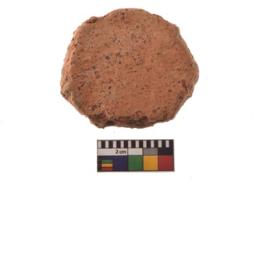 | Description / विवरण | Specimen of terracotta disc; it is irregular at the circumference and having rough surface. |