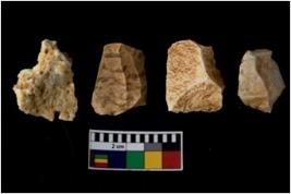 | Description / विवरण | There are n 4 of utilized worked cores. They show multidirectional irregular scar pattern. Three have broken tip. |
