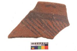 | Description / विवरण | Specimen of potsherd with black decorative geometric Linear painting, Type Black on Red Ware . |