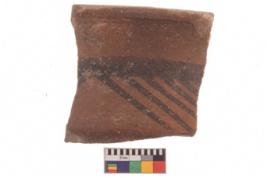 | Description / विवरण | Specimen of potsherd with decorative geometric painting, Type Black on Red ware . |