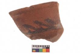 | Description / विवरण | Specimen of potsherd with decorative geometric painting, Type Black on Red ware . |