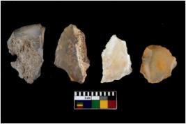 | Description / विवरण | There are n 4 of utilized worked cores.They show multidirectional irregular scar pattern and have sharp edges. Three are tapering on one end. |