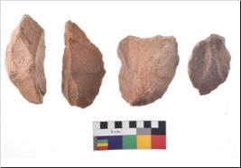| Description / विवरण | There are n 4 of utilized worked cores. There are multidirectional irregular dominant scar pattern on both dorsal and ventral face of the flakes. Some are tapering on one end. |