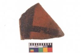 | Description / विवरण | Specimen of potsherd with decorative geometric painting, Type Black on Red ware . |
