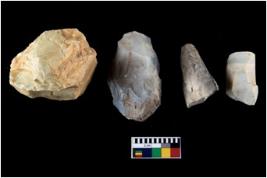 | Description / विवरण | There are n 4 cores; three of chalcedony and one of chert, ridge marks of detachment of flakes are visible. All have sharp edges. |