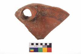 | Description / विवरण | Specimen of potsherd with black decorative geometric Linear painting, Type Black on Red Ware . |