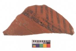 | Description / विवरण | Specimen of potsherd with decorative geometric painting, Type Black on Red ware . |