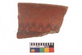 | Description / विवरण | Specimen of potsherd with traces of decorative geometric painting, Type Black on Red ware . |