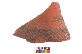 | Description / विवरण | Specimen of potsherd with black decorative geometric Linear painting, Type Black on Red Ware . |