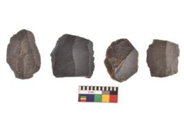 | Description / विवरण | There are n 4 utilized flake cores. There are multidirectional irregular scar pattern on both dorsal and ventral face of the flake cores. One has blunted edges and three have round edges. |