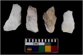 | Description / विवरण | There are n 4 flake cores. All of them are fully fluted flake cores without any trace of crested ridge flakes. Some are tapering at one end and some have flat base. |