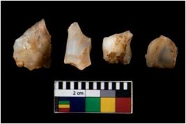 | Description / विवरण | There are n 4 of utilized worked cores. They show multidirectional irregular scar pattern. Two are tapering on one end and one has a broken tip. |