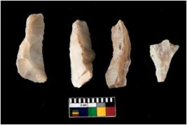 | Description / विवरण | There are n 4 of utilized worked cores.They show multidirectional irregular scar pattern. Three are tapering on one end and are elongated in shape. |