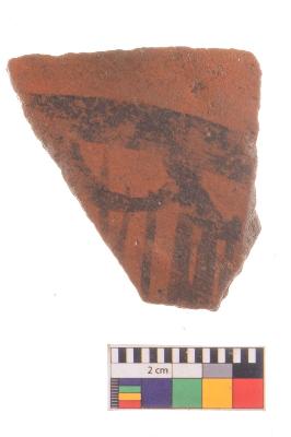 | Description / विवरण | Specimen of potsherd with black decorative painting, Type Black on Red Ware . |
