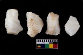 | Description / विवरण | There are n 4 flake cores. All of them are fully fluted flake cores without any trace of crested ridge flakes. Some are tapering at one end and some have flat base. |