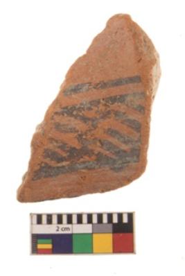 | Description / विवरण | Specimen made up of well levigated clay. It is having smooth texture with geometric criss-cross lines design on its surface. Black on Red ware |