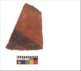 | Description / विवरण | Specimen of potsherd with decorative geometric painting, Type Black on Red ware . |