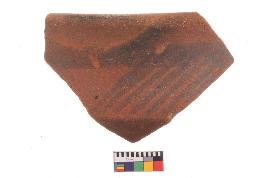 | Description / विवरण | Specimen of potsherd with black decorative geometric Linear painting, Type Black on Red Ware . |