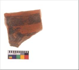 | Description / विवरण | Specimen of potsherd with decorative geometric painting, Type Black on Red ware . |