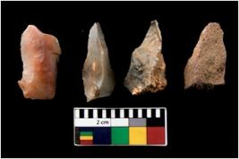 | Description / विवरण | There are n 4 of utilized worked cores. They show multidirectional irregular scar pattern. One is tapering on one end. |
