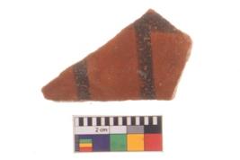 | Description / विवरण | Specimen of potsherd with decorative geometric painting, Type Black on Red ware . |