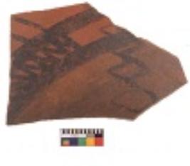 | Description / विवरण | Specimen of black on red ware with decorative black pigment, zigzag pattern . |