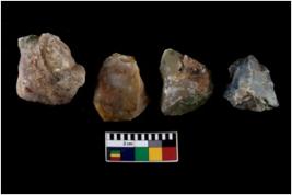 | Description / विवरण | There are n 4 of utilized worked cores. They show multidirectional irregular scar pattern. Three have round base. |