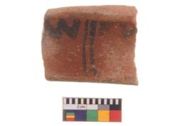 | Description / विवरण | Specimen of potsherd with decorative geometric painting, Type Black on Red ware . |