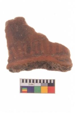 | Description / विवरण | Specimen of potsherd with traces of decorative geometric painting, Type Black on Red ware . |