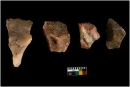 | Description / विवरण | There are n 4 of utilized worked cores. They show multidirectional irregular dominant scar pattern. Two of them is tapering at one end. |