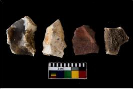 | Description / विवरण | There are n 4 of utilized worked cores. They show multidirectional irregular scar pattern. Two are tapering on one end and three have flat base. |