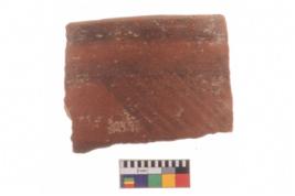 | Description / विवरण | Specimen of potsherd with traces of decorative geometric painting, Type Black on Red ware . |