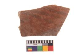 | Description / विवरण | Specimen of potsherd with traces of decorative geometric painting, Type Black on Red ware . |