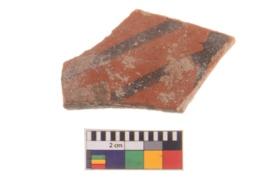 | Description / विवरण | Specimen of potsherd with traces of decorative geometric painting, Type Black on Red ware . |
