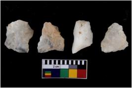 | Description / विवरण | There are n 4 flake cores. All of them are fully fluted flake cores without any trace of crested ridge flakes. Some are tapering at one end and some have round edges. |