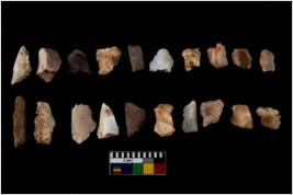 | Description / विवरण | There are n 20 of worked flakes. They have bulge of percussion and some are flat flakes. Few are tapering at one end and are elongated in shape. |