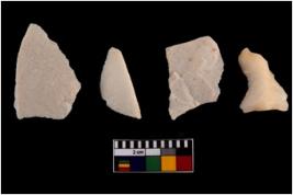 | Description / विवरण | There are n 4 utilized worked flakes; they show multidirectional irregular scar pattern on both dorsal and ventral face of the flakes.Three are tapering at one end and all are having sharp edges. All vary in shape and size. |