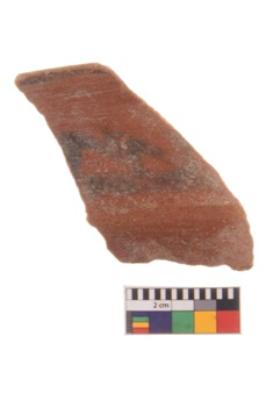 | Description / विवरण | Specimen of potsherd with traces of decorative geometric painting, Type Black on Red ware . |