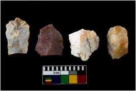 | Description / विवरण | There are n 4 of utilized worked cores. They show multidirectional irregular scar pattern. Two are tapering on one end and two have flat base. |