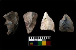| Description / विवरण | There are n 4 of utilized worked cores. They show multidirectional irregular scar pattern and have sharp edges. Three are tapering on one end. |