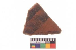 | Description / विवरण | Specimen of potsherd with traces of decorative geometric painting, Type Black on Red ware . |