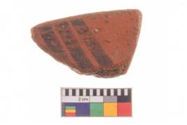 | Description / विवरण | Specimen of potsherd with decorative geometric painting, Type Black on Red ware . |