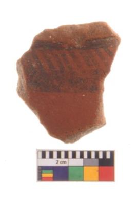 | Description / विवरण | Specimen of potsherd with decorative geometric painting, Type Black on Red ware . |